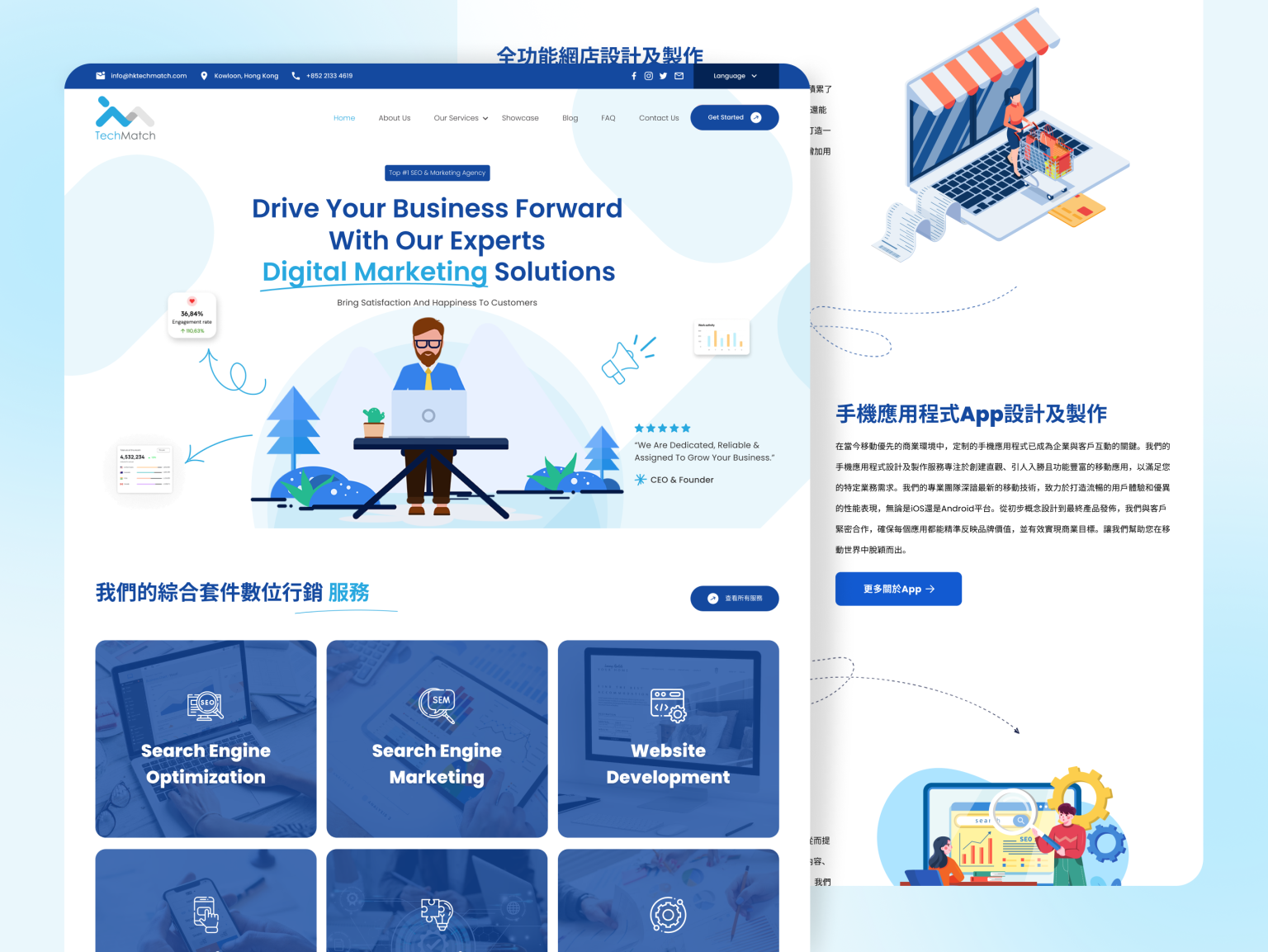 For the Hongkong Tech Match website, I collaborated with HK Tech Match to create a sleek, professional platform designed to connect businesses with top-tier tech solutions. Using Elementor Pro on WordPress and custom Figma designs, I developed a responsive, user-friendly site that highlights their services and tech partnerships. The website is optimized for users in Kowloon, Hong Kong, looking for innovative technology solutions and digital transformation.